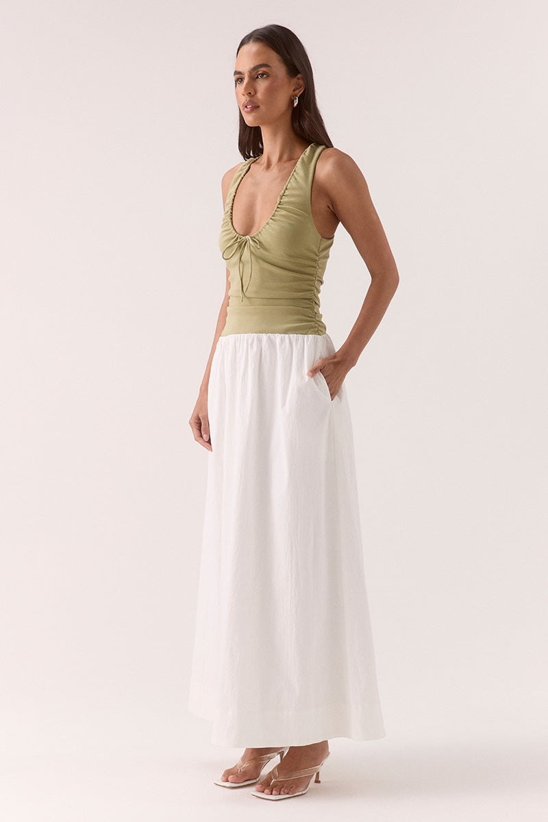 REVE DRESS - SOFT KHAKI / CHALK